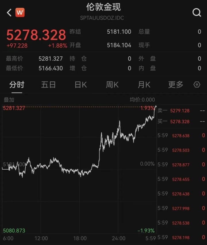 周五的市场也受到中东局势的压抑。截至周五收盘,随着全球多国呼吁民众尽快离开伊朗,现货黄金接近每盎司5280美元,本月累计上涨超8%。